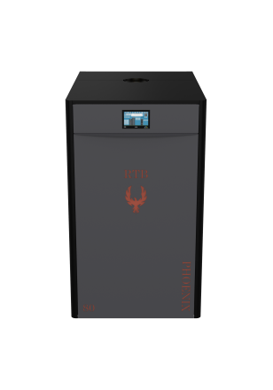 RTB Phoenix is the top of the line model in the RTB pellet boiler series which includes the V16 controller, 7” capacitive touch screen, circulation pump, O2 control, inbuilt compressor cleaning system with compressor, self-compressing ash drawer, laser distance sensor (for pellet level monitoring), photosensor, and exhaust fan with underpressure control.
